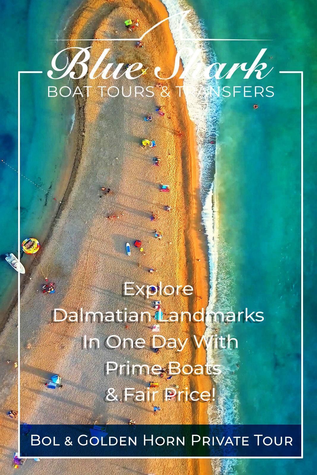 Blue Shark's Bol and Golden Horn Private Tour is an elite island adventure.Designed for a small group of people. The boat tour from Split will introduce you to the famous Dalmatian island of Brač and the popular Golden Horn beach, as well as other landmark attractions. The excellent fleet of Blue Shark boats will turn an ordinary summer holiday into an active private tour for the most demanding guests.